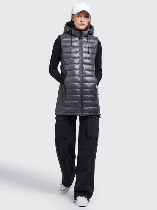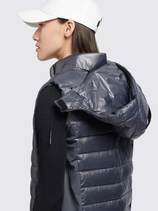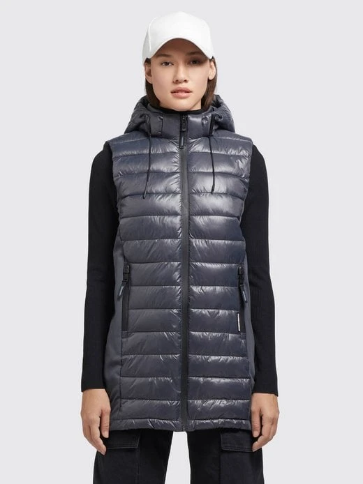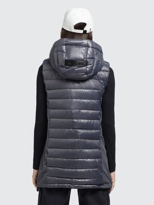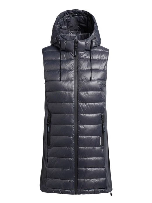 Die glänzende khujo Weste BECCA SHINY mit abnehmbarer Kapuze und einem elastischen Kordelzug sowie einer leichten Wattierung in der gesteppten Vorderseite, Kapuze und dem Rückenteil lässt sich vielseitig kombinieren. Dank einem Reißverschluss und seitlichen Reißverschlusstaschen mit einer wasserabweisenden Beschichtung, einer Windschutzblende und einem verstärkten Stehkragen bist Du mit dieser Steppweste gut ausgestattet.