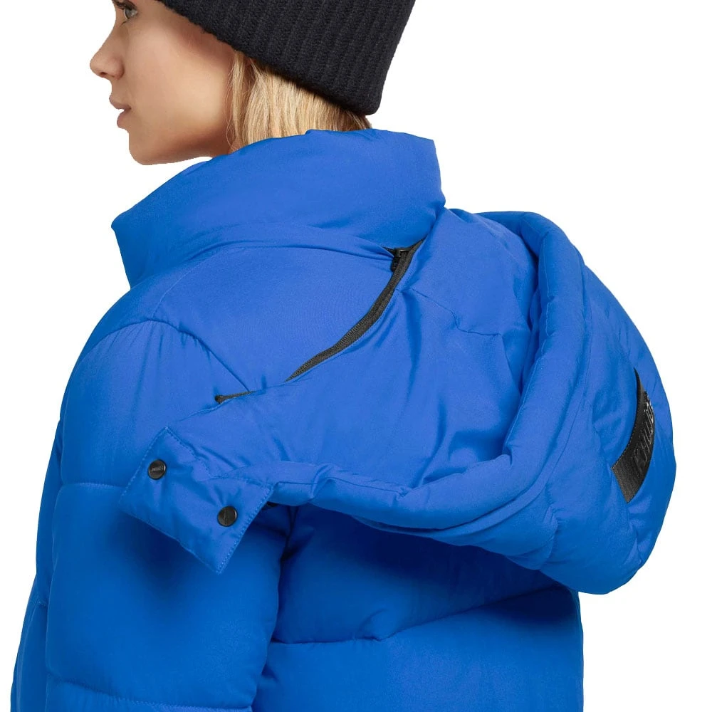 Die Emoria Matt ist mit dem praktischen Cape to go-Feature ausgestattet. Wenn es zu warm wird einfach die Jacke von den Armen streifen und wie einen Rucksack am Rücken tragen.