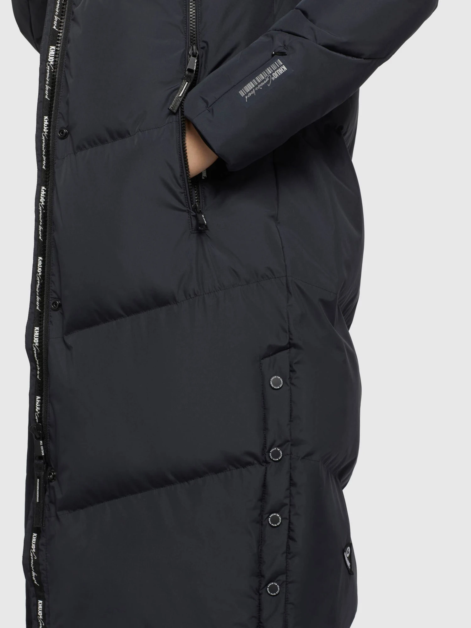 Die legere Passform mit einem wadenlangen Schnitt sorgt bei dem khujo Mantel SONJE4 für wohlige Wärme an kalten Wintertagen. Dieser warm wattierte Steppmantel ist der perfekte Begleiter bei frostigen Temperaturen und bietet Dank der hoch schließenden Kapuze mit elastischem Kordelzug, einem integrierten Stehkragen, Taschenbeuteln mit Fleece und Rippstrickbündchen am Ärmelfutter höchsten Tragekomfort.